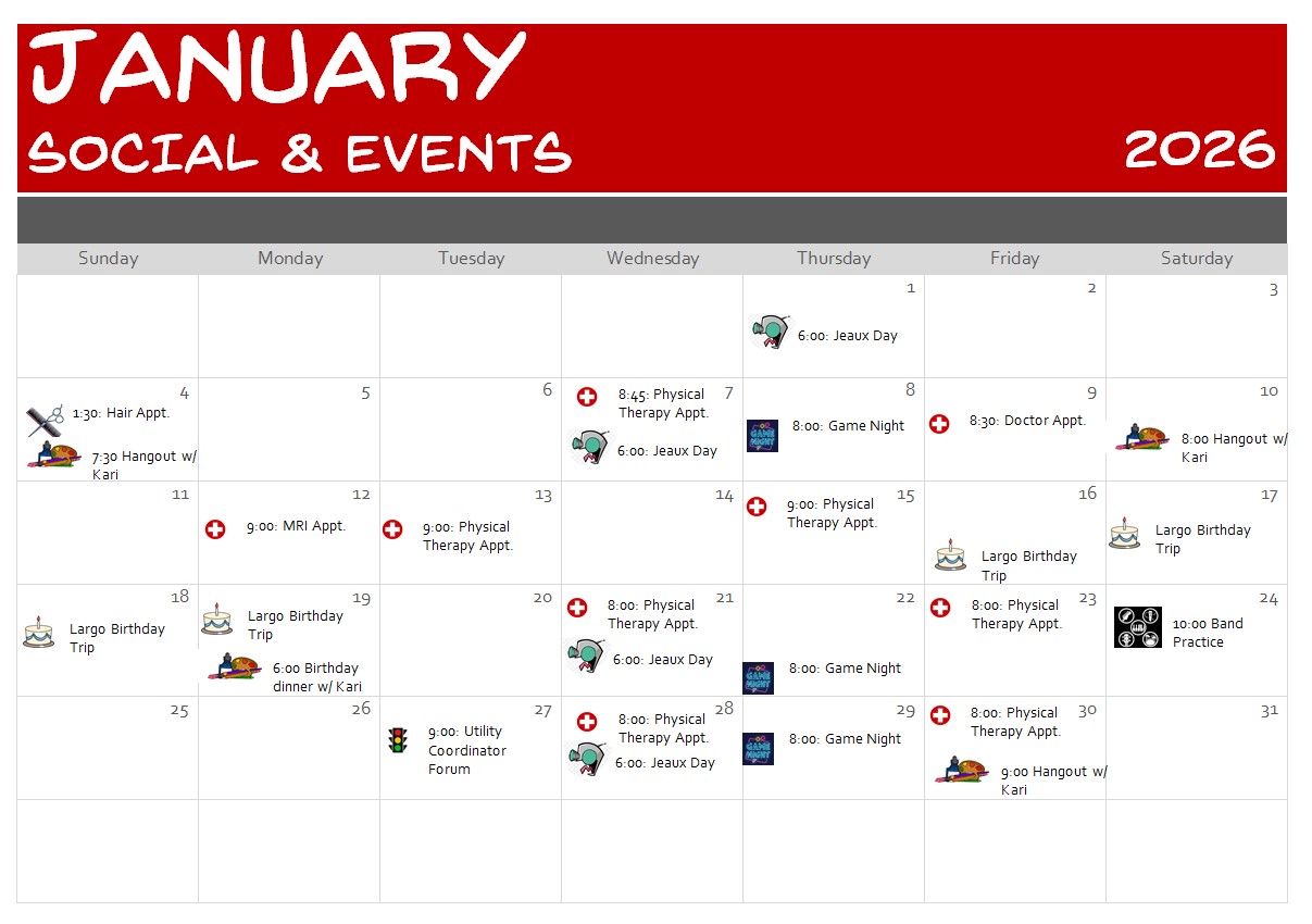 Summary: I've been doing Jeaux Day, Game Night, band practice, and hanging out with Kari here and there, and have increased the posts about everyday stuff just slightly (but still not really where I want to be). I do have some outstanding messages to respond to (one e-mail, a few social media items).