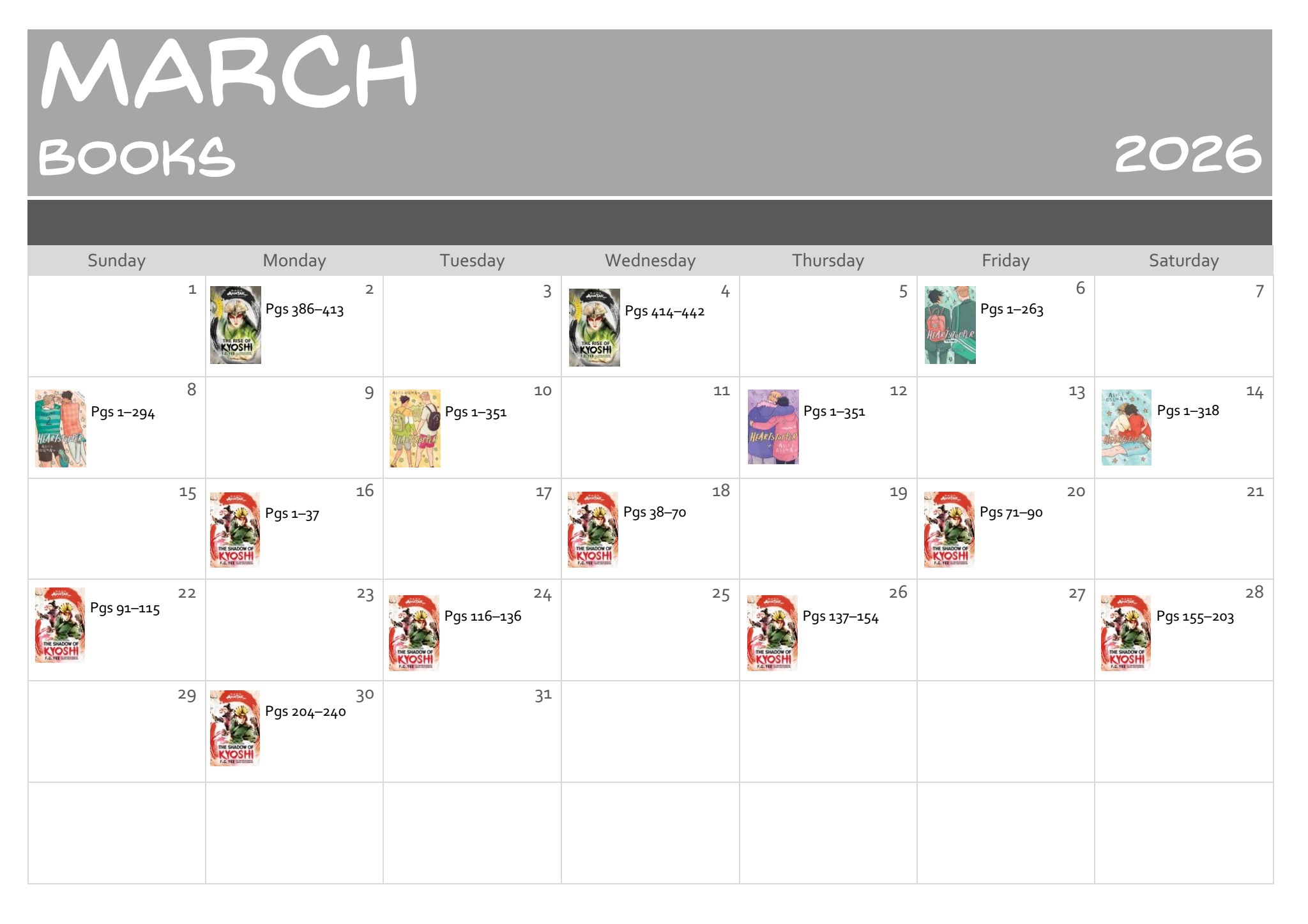 3. Reading Goals: Read at least every other day.